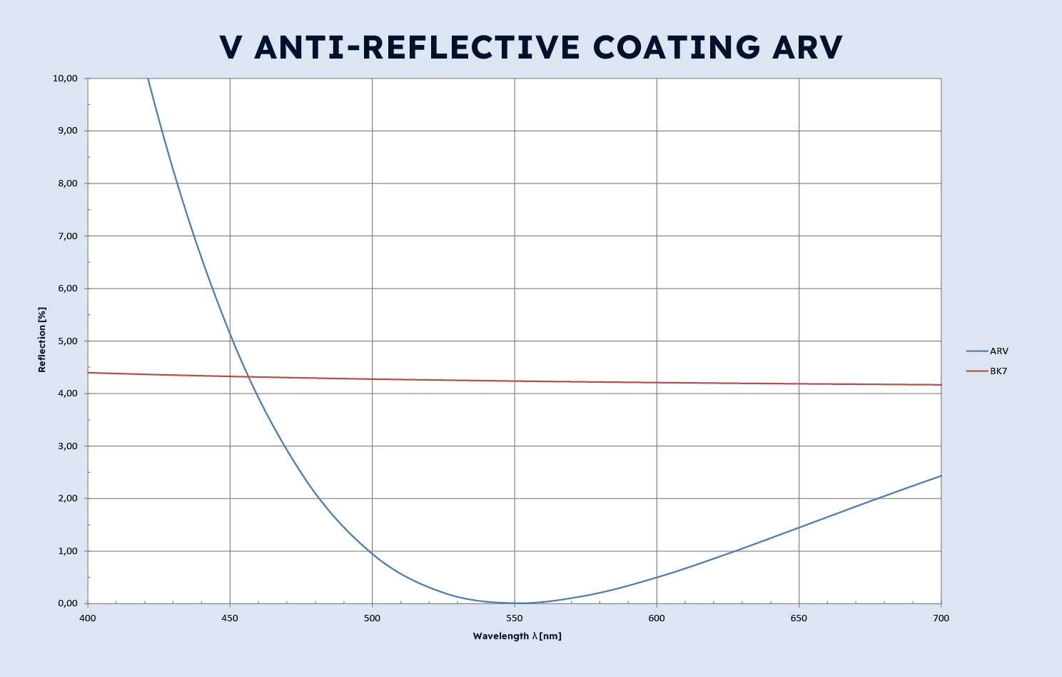 V-coating for individual wavelengths
