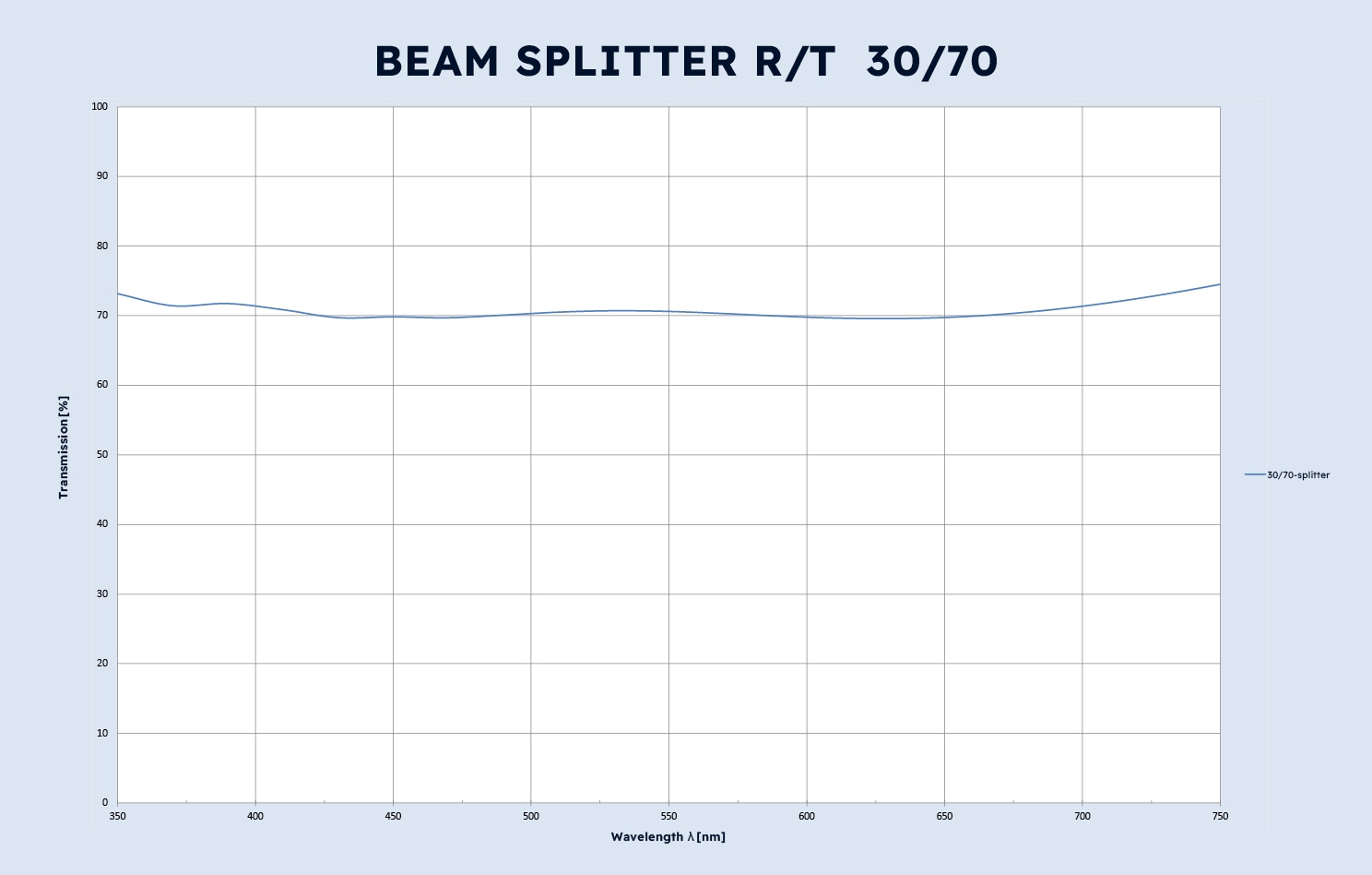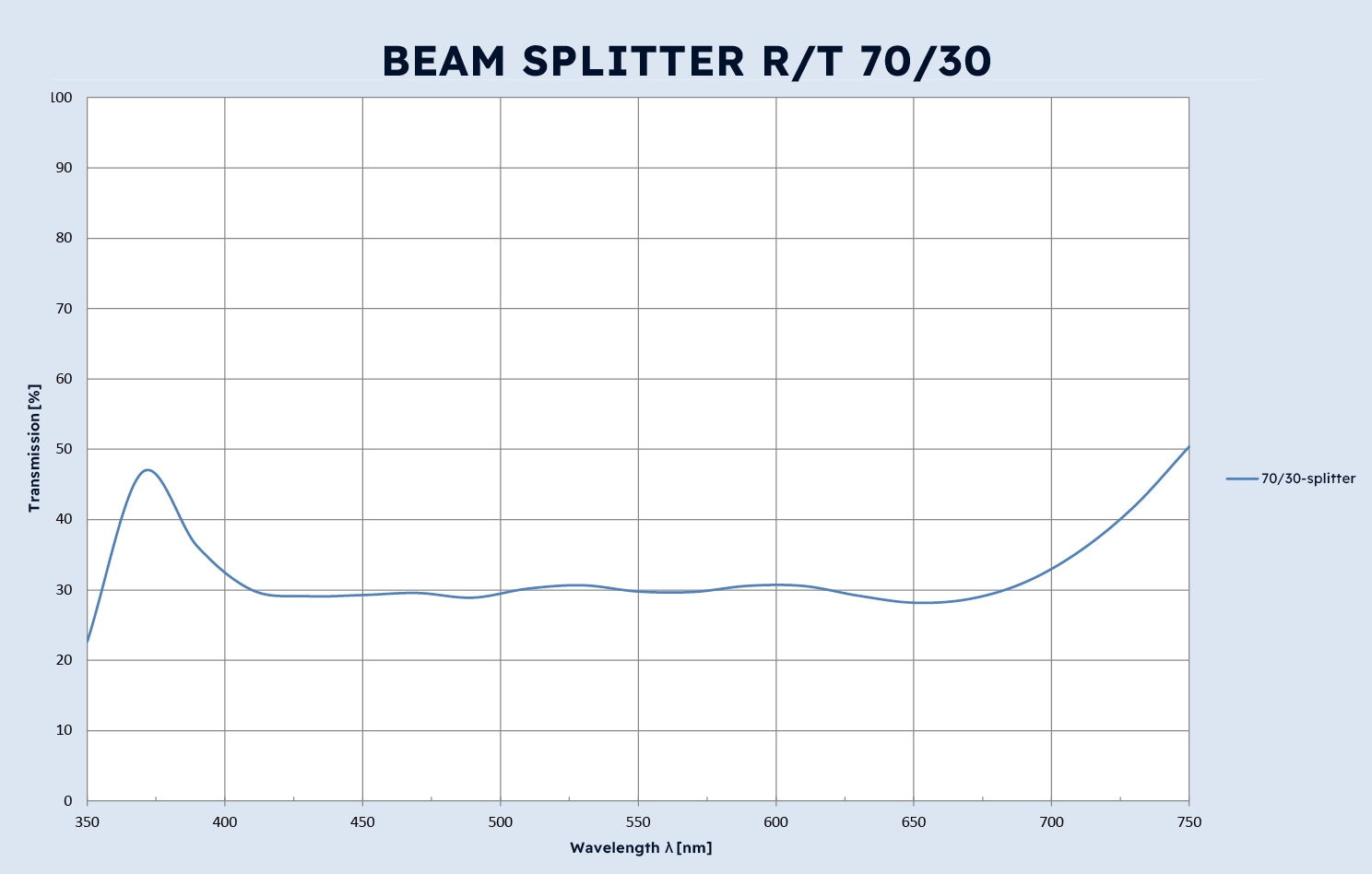 Beamsplitter plates or beamsplitter cubes as per client‘s specification; beamsplitter plates with split ratios of R/T = 30/70, 50/50, 70/30 in VIS und NIR; see Products on stock